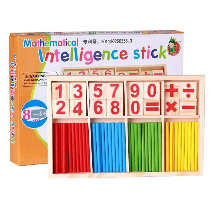 52 Counting Stick Wooden Mathematics Calculation Early Educational Toy for Kid Child Features: Wooden mathematical game for kids to learn simple maths calculation. The product contains 19 number tiles 5 mathematical symbol tiles and 52 pcs of sticks from 4 colors. Description: Material: wood Size: about 22.5 x 14.5 x 2 cm LxDxH. Package includes: 1 times; Mathematics Toy.